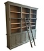 Boekenkast Borculo Engels groen met eiken lijsten en trap 260 x 240cm