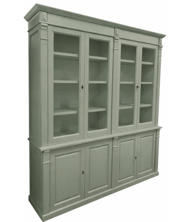 Buffetkast Engels groen - Engels groen Toulouse 220 x 240cm een kast van massief Grenenhout met een dichte onderkast en een glazen bovenkast. De landelijke gespoten afwerking maken deze kast extra bijzonder met romantische uitstraling. Deze Engels groene e buffetkast in de kleur Engels groen biedt veel opbergruimte voor spullen die je graag uit het zicht hebt in de onderkast en in het glazen gedeelte van de landelijke buffetkast kun je je persoonlijke spullen etaleren. De ramen van de deuren van de bovenkast zijn gemaakt van vlak glas wat deze kast een oude landelijke romantische look geeft. Deze Engels groen door geschuurde buffetkast met landelijke uitstraling past zowel in de woonkamer als ook in de keuken. Je kunt de buffetkast Engels groen Toulouse bestellen in alle RAL kleuren en in de RAL kleur 9010 is deze kast direct leverbaar. Deze buffetkast is daarmee uniek en speciaal en kun je aan je wensen aan passen! Je kiest de kleur die het beste bij je interieur past. Je kunt zelfs de buitenkant en binnenkant van deze kast in verschillende kleuren laten uitvoeren.