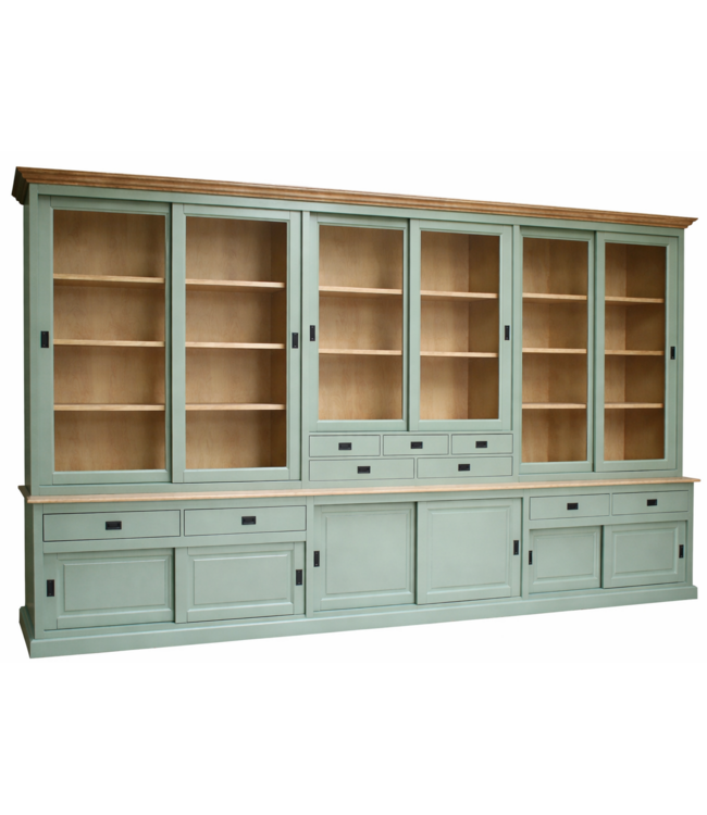 Buffetkast Engels groen Haarlem XXXL 400 x 260 met eiken interieur en lijsten