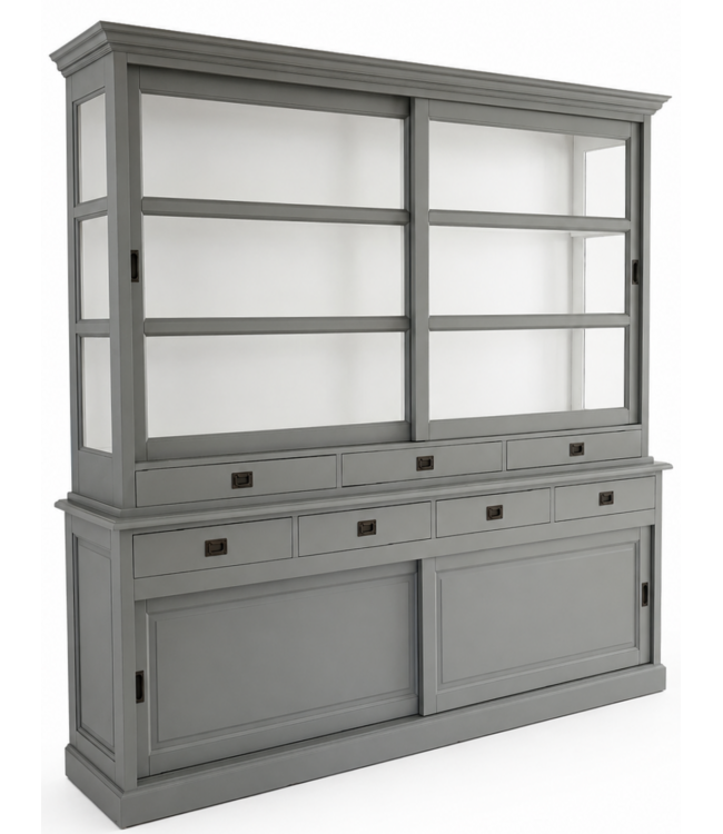 Het is je vast al opgevallen: de Engels groen Buffetkast Emmen is een sfeervolle landelijke buffetkast en is leverbaar in de standaardmaten 160cm, 200cm. 220cm, 225cm en 240cm breed. Ook kan je de onderkast los als dressoir bestellen in elke gewenste RAL kleur. Deze kast wordt standaard geleverd in de gladde gespoten afwerking. Het is stevens mogelijk om op aanpassing aan maatvoering te bestellen en de bovenkast met dichte zijkanten te bestellen.