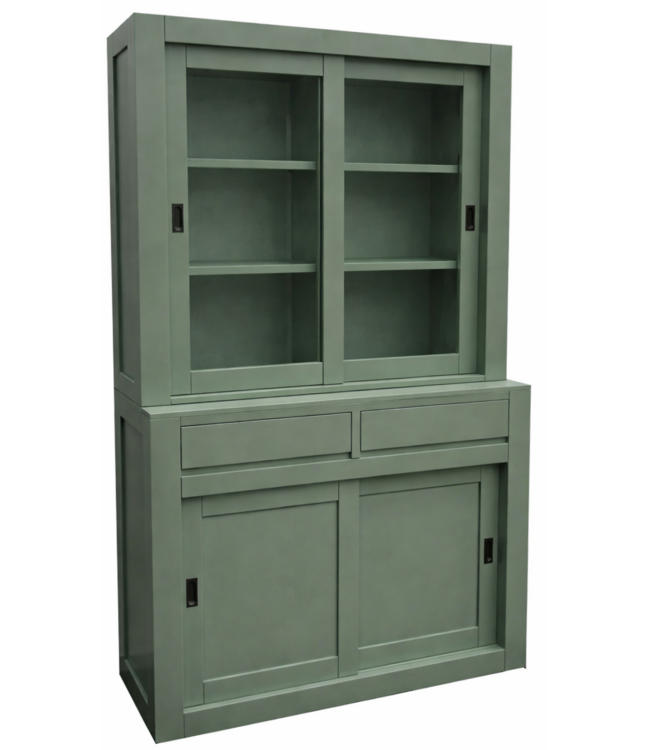 Buffetkast groen - groen design 140cm soft close in de kleurgroen gespoten en de binnenkant in de kleur groen is een mooie strakke vormgegeven design kast gemaakt van massief grenenhout met een dichte onderkast met schuifdeuren en greeploze laden en in de bovenkast schuifdeuren met glas. Deze mooie moderne strakke buffetkast groen biedt veel opbergruimte voor spullen die je graag uit het zicht hebt in de onderkast en in het glazen gedeelte van de buffetkast groen design kan je je persoonlijke spullen etaleren. Buffetkast model design in het groen met groene binnenkant heeft een brede omlijsting van 10cm wat deze kast een stoer en robuust strak uiterlijk geeft en de witte binnenkant maakt dat je persoonlijke spullen nog mooier uitkomen De groene strakke kast design heeft greeploze laden en schuifdeuren en een dichte onder plint. Deze design buffetkast heeft een moderne uitstraling en past zowel in de woonkamer als ook in de keuken. Je kunt de kast design tevens bestellen in alle RAL kleuren en in de RAL kleur 9010 is deze kast direct leverbaar. Deze buffetkast strak is daarmee uniek en speciaal en kun je aan je wensen aan passen! Je kiest de kleur die het beste bij je interieur past. Je kunt zelfs de buitenkant en binnenkant van deze kast in verschillende kleuren laten uitvoeren
