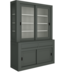 Buffetkast ijzergrijs Petten 160cm breed in de kleur ijzergrijs gespoten en de binnenkant in het wit is een strakke vormgegeven design buffetkast. Deze grote ijzergrijze kast gemaakt van massief grenenhout heeft een dichte onderkast met schuifdeuren en greeploze laden en in de bovenkast schuifdeuren met glas en de zijkanten zijn eveneens van glas. De strakke ijzergrijze design buffetkast biedt veel opbergruimte voor spullen die je graag uit het zicht hebt in de onderkast en in het glazen gedeelte van de buffetkast ijzergrijs Petten kan je je persoonlijke spullen etaleren. Buffetkast design strak model Petten heeft een brede omlijsting van 10cm wat deze kast een stoer en robuust strak uiterlijk geeft. De ijzergrijze strakke kast Petten heeft greeploze laden en schuifdeuren.. Deze design buffetkast heeft een moderne uitstraling en past zowel in de woonkamer als ook in de keuken. Je kunt de witte kast Petten tevens bestellen in alle RAL kleuren en in de RAL kleur 9010 is deze kast direct leverbaar. Deze buffetkast strak is daarmee uniek en speciaal en kun je aan je wensen aan passen. Je kiest de kleur die het beste bij je interieur past. Je kunt zelfs de buitenkant en binnenkant van deze kast in verschillende kleuren laten uitvoeren