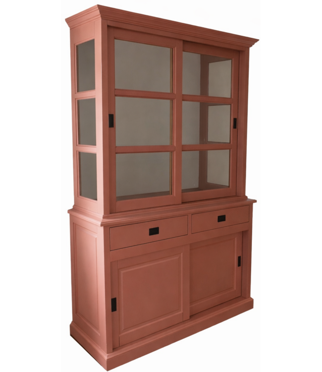 Buffetkast oudroze Putten 120cm soft close breed in de chique kleur oudroze is een mooie sfeervolle buffetkast van massief Grenenhout met een dichte onderkast en glazen deuren in de bovenkast. De strakke invallende handgrepen op de lade met luxe soft close sluiting en gladde gespoten afwerking maken deze kast extra bijzonder. Deze kast oudroze biedt veel opbergruimte voor spullen die je graag uit het zicht hebt in de onderkast en in het glazen gedeelte van de buffetkast kan je je persoonlijke spullen etaleren. De grote oudroze sfeervolle buffetkast Putten heeft schuifdeuren die op aluminium lopen wat zeer soepel en geruisloos gaat. De zijkanten van de bovenkast van de buffetkast Putten zijn van glas wat een mooie doorkijk en lichtinval in de kast geeft. Deze buffetkast met landelijke uitstraling past zowel in de woonkamer als ook in de keuken. Je kunt de buffetkast Putten bestellen in alle RAL kleuren en in de RAL kleur 9010 is deze kast direct leverbaar. Deze buffetkast is daarmee uniek en speciaal en kun je aan je wensen aan passen! Je kiest de kleur die het beste bij je interieur past. Je kunt zelfs de buitenkant en binnenkant van deze kast in verschillende kleuren laten uitvoeren.