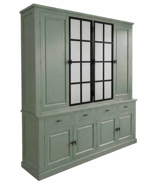 Buffetkast Soest Engels groen - wit met stalen deuren 220 x 224cm dichte zijdeuren