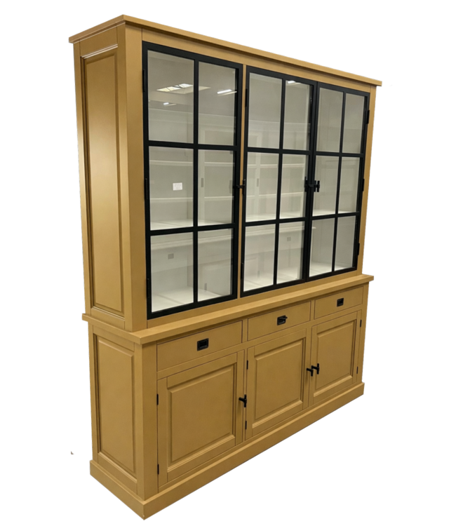 Het is je vast al opgevallen: de buffetkast goud Soest met stalen deuren is een buffetkast met een landelijke uitstraling en door zijn afwerking een pronkstuk in iedere ruimte. Ook kan je de onderkast los als dressoir bestellen in elke gewenste RAL kleur. Deze kast wordt geleverd in de afwerking handgeschilderd wat een landelijke en authentieke uitstraling geeft en wil je een strakkere look kun je voor een meerprijs kiezen voor de afwerking gespoten.