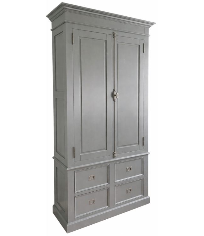 Buffetkast stofgrijs Zeist 120 x 140cm met dichte deuren is een klassieke kast gemaakt van massief grenenhout met in de onderkast grote diepe laden en in de bovenkast dichte draaideuren met espagnoletsluiting . Deze grote en hoge stofgrijze buffetkast geen een licht stofgrijze binnenkant en biedt veel opbergruimte voor spullen die je graag uit het zicht hebt in de onderkast met laden en in het glazen gedeelte van de kast kan je je persoonlijke spullen etaleren. Buffetkast Zeist stofgrijs is een statige kast en heeft een sfeervolle uitstraling. Door zijn tijdloze vormgeving past deze mooie stofgrijze buffetkast in de woonkamer als ook in de keuken en in een klassiek als ook een design interieur. Je kunt de buffetkast Zeist stofgrijs tevens bestellen in alle RAL kleuren. Deze Buffetkast is daarmee uniek en speciaal en kun je aan je wensen aan passen! Je kiest de kleur die het beste bij je interieur past. Je kunt zelfs de buitenkant en binnenkant van deze kast in verschillende kleuren laten uitvoeren