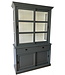 Buffetkast zeildoekgrijs Putten 140 x 220cm in de kleur zeildoekgrijs met witte binnenkant is een mooie landelijke kast van massief Grenenhout met een dichte onderkast en glazen deuren in de bovenkast. De strakke handgrepen op de brede laden met luxe soft close sluiting en gladde gespoten afwerking maken deze kast in het zeildoekgrijs extra bijzonder. Deze mooie sfeervolle buffetkast biedt veel opbergruimte voor spullen die je graag uit het zicht hebt in de onderkast en in het glazen gedeelte van de grijze buffetkast kan je je persoonlijke spullen etaleren. De grote grijze buffetkast Putten heeft schuifdeuren die op aluminium lopen wat zeer soepel en geruisloos gaat. De zijkanten van de bovenkast van de buffetkast zeildoekgrijs Putten zijn van glas wat een mooie doorkijk en lichtinval in de kast geeft wat deze kast ook zeer goed toepasbaar maakt als vitrine kast. Deze mooie grote buffetkast met landelijke uitstraling past zowel in de woonkamer als ook in de keuken. Je kunt de buffetkast Putten bestellen in alle RAL kleuren en in de RAL kleur 9010 is deze kast direct leverbaar. Deze buffetkast is daarmee uniek en speciaal en kun je aan je wensen aan passen Je kiest de kleur die het beste bij je interieur past. Je kunt zelfs de buitenkant en binnenkant van deze kast in verschillende kleuren laten uitvoeren.