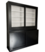 Buffetkast zwart Budel XL soft close 200 x 240cm in de chique kleur zwart is een grote mooie strakke vormgegeven kast van massief Grenenhout met een dichte onderkast en een glazen bovenkast beiden met schuifdeuren. De grote greeploze laden met luxe soft close sluiting in de bovenkast, paneel achterwand, en gladde gespoten afwerking maken deze zwarte moderne designkast Budel extra bijzonder. Deze hoge moderne grote zwarte buffetkast Budel biedt veel opbergruimte voor spullen die je graag uit het zicht hebt in de onderkast en in het glazen gedeelte van de buffetkast zwart kan je je persoonlijke spullen etaleren. De moderne Budel buffetkast XL heeft schuifdeuren die in aluminium rails hangen en zeer soepel lopen. Deze zwarte buffetkast met landelijke uitstraling past zowel in de woonkamer als ook in de keuken. Je kunt de buffetkast Budel bestellen in alle RAL kleuren en in de RAL kleur 9010 is deze kast direct leverbaar. Deze buffetkast is daarmee uniek en speciaal en kun je aan je wensen aan passen! Je kiest de kleur die het beste bij je interieur past. Je kunt zelfs de buitenkant en binnenkant van deze kast in verschillende kleuren laten uitvoeren.