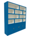 Lichtblauwe design vakkenkast ongelijke vakken 200 x 240cm